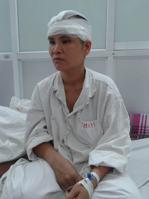 Chị Hương được đưa đi cấp cứu tại BV Việt Đức (Hà Nội) trong tình trạng một nửa da đầu đã đứt rời và một nửa bị rạch thành nhiều mảnh nhỏ. Phần da đầu này được người thân bảo quản trong đá lạnh.